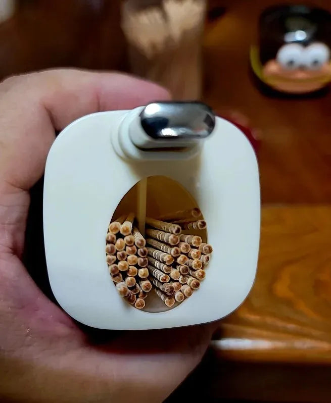 The automatic pop-up feature dispenses one toothpick at a time, enhancing hygiene by minimizing contact with other toothpicks.